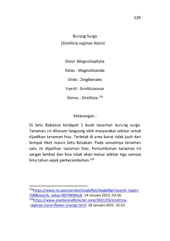 Di Setu Babakan terdapat 1 buah tanaman burung surga.