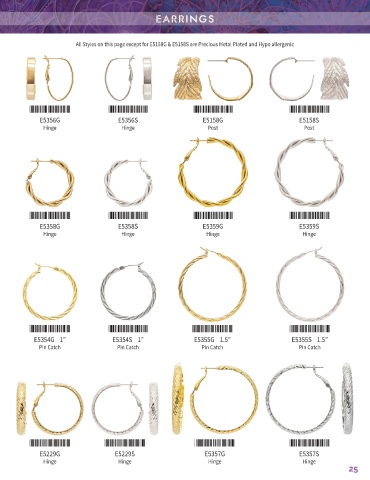 All Styles on this page except for E5158G & E5158S are Precious Metal Plated and Hypo allergenic