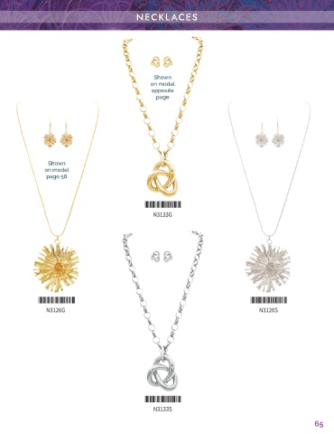 NECKLACES Shown on model opposite page Shown on model page 58 *N3133G* N3133G *N3126G* *N3126S* N3126G N3126S *N3133S* N3133S 65