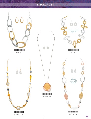 NECKLACES NECKLACES Shown on model page 26 *N3119TT* *N3121TT* N3119TT N3121TT Shown on model page 26 *N3120M* N3120M 31” *N3095G* *N3122M* N3095G 24” N3122M 34” 75 M
