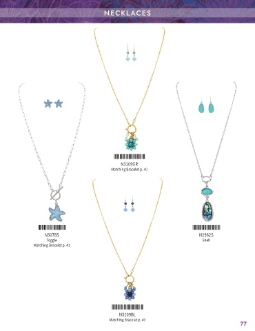 NECKLACES NECKLACES *N3109GR* N3109GR Matching Bracelet p. 40 *N3078S* *N2962S* N3078S N2962S Toggle Shell Matching Bracelet p. 41 *N3109BL* N3109BL Matching Bracelet p. 40 77