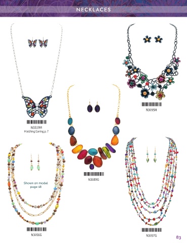 NECKLACES NECKLACES *N3095M* N3095M *N3319M* N3319M Matching Earring p. 7 *N3089G* N3089G Shown on model page 18 *N3056G* *N3057G* N3056G N3057G 83