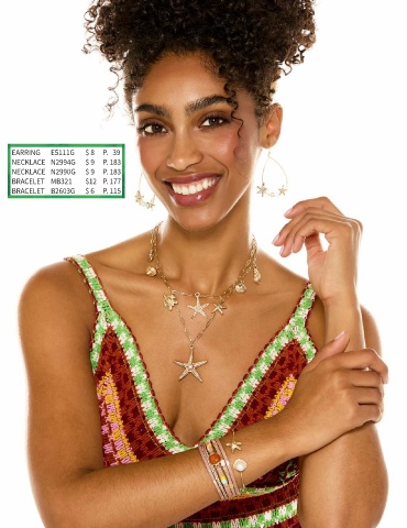 EARRING E5111G $ 8 P. 39 NECKLACE N2994G $ 9 P. 183 NECKLACE N2990G $ 9 P. 183 BRACELET MB321 $12 P. 177 BRACELET B2603G $ 6 P. 115