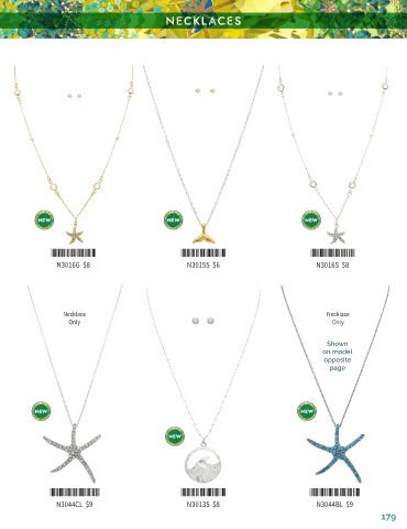 NECKLACES *N3016G* *N3015S* *N3016S* N3016G $8 N3015S $6 N3016S $8 Necklace Necklace Only Only Shown on model opposite page *N3044CL* *N3013S* *N3044BL* N3044CL $9 N3013S $8 N3044BL $9 179