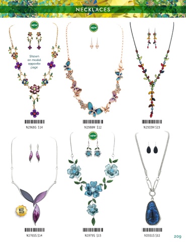 NECKLACES Shown on model opposite page *N2968G* *N2988M* *N2933M* N2968G $14 N2988M $12 N2933M $15 *N2765S* *N2979S* *N2931S* N2765S $14 N2979S $15 N2931S $12 209