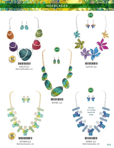 NECKLACES *N2811S* *N2977M* N2811S $13 N2977M $12 Matching Bracelet p. 155 *N2978G* N2978G $12 Shown on model opposite page *N2739GR* *N2980S* N2739GR $12 N2980S $12 Matching Bracelet p. 154 Matching Bracelet p. 154 211