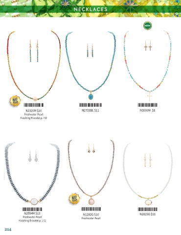 NECKLACES *N2320M* *N2733BL* *N3000M* N2320M $10 N2733BL $11 N3000M $8 Freshwater Pearl Matching Bracelet p. 152 *N2954H* *N1282G* *N2825G* N2954H $13 N1282G $10 N2825G $11 Freshwater Pearl Freshwater Pearl Matching Bracelet p. 172 214