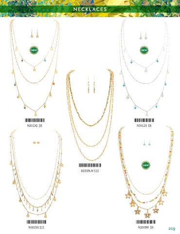 NECKLACES NECKLACES *N3012G* *N3012S* N3012G $9 N3012S $9 *N2339LM* N2339LM $12 *N2625G* *N3009M* N2625G $11 N3009M $9 219