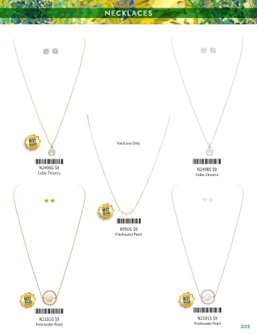 NECKLACES NECKLACES Necklace Only *N2498G* *N2498S* N2498G $8 N2498S $8 Cubic Zirconia Cubic Zirconia *N950G* N950G $8 Freshwater Pearl *N2181G* *N2181S* N2181G $9 N2181S $9 Freshwater Pearl Freshwater Pearl 221