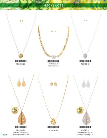NECKLACES *N2846G* *N2951G* *N2846S* N2846G $8 N2951G $10 N2846S $8 Freshwater Pearl *N2476G* *N2903G* *N2476S* N2476G $9 N2903G $8 N2476S $9 Matching Earring p. 77 Matching Earring p. 77 226 Matching Bracelet p. 143 Matching Bracelet p. 143