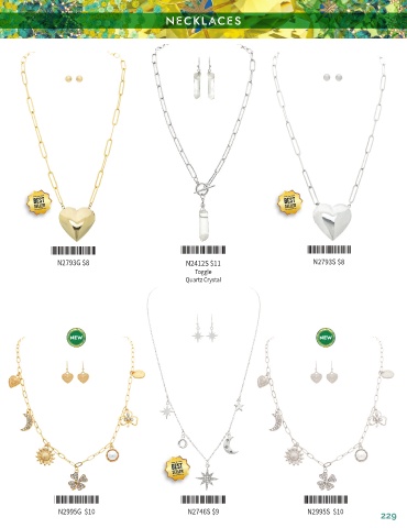 NECKLACES NECKLACES *N2793G* *N2412S* *N2793S* N2793G $8 N2412S $11 N2793S $8 Toggle Quartz Crystal *N2995G* *N2746S* *N2995S* N2995G $10 N2746S $9 N2995S $10 229
