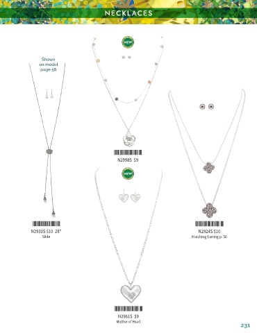 NECKLACES NECKLACES Shown on model page 58 *N2998S* N2998S $9 *N2930S* *N2924S* N2930S $10 28” N2924S $10 Slide Matching Earring p. 56 *N2961S* N2961S $9 Mother of Pearl 231