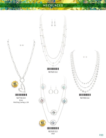 NECKLACES *N2762S* N2762S $12 *N2772S* *N2745S* N2772S $10 N2745S $12 Brass Matching Earring p. 100 *N2763S* N2763S $13 Shell 233