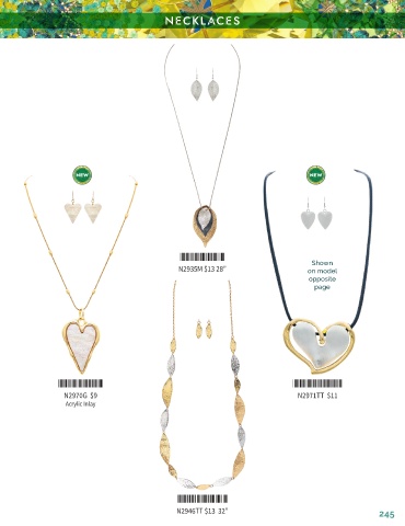 NECKLACES *N2935M* Shown N2935M $13 28” on model opposite page *N2970G* *N2971TT* N2970G $9 N2971TT $11 Acrylic Inlay *N2946TT* N2946TT $13 32” 245
