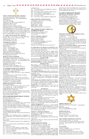 8/13 - 10 a.m. Sew ’n Sews                        thinking and growth and is open to engaging with all faiths.  Services are held Saturday at 10am, and on holidays.