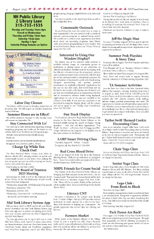 and recreational needs of the community. Exhibits may There will be no Story Time August 18 to August 29th.