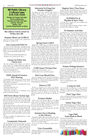 Summer Hours are in Effect!                    interested in using the display, please call the Library   section. Teens can drop in to explore a variety of creative