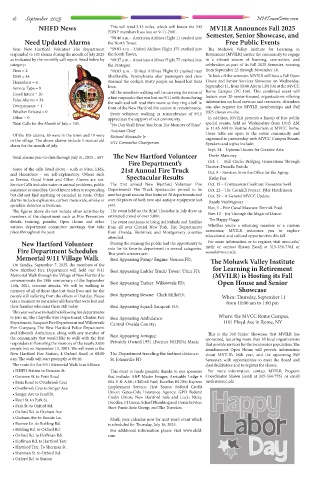 New  Hartford  Fire  Station, 4  Oxford  Road,  at  08:00   The Department traveling the farthest distance:   about MVILR’s 28th year, and the upcoming Fall