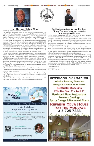 The Highway department winter shifts will start November 30, 2025 this year. The the 2% tax cap while adding key resources for the New Hartford Public Library and