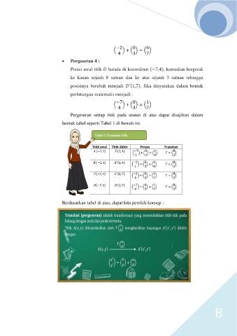 ke kanan sejauh 8 satuan dan ke atas sejauh 3 satuan sehingga