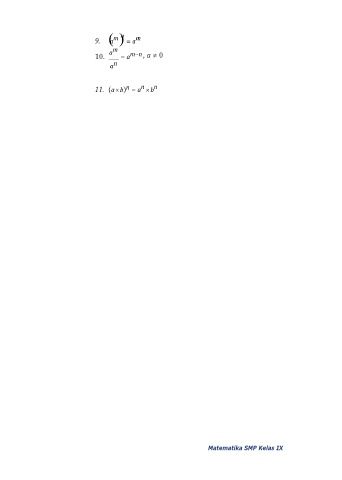n m m n a 9. ( ) = a 10. a m = a m−n , a 0 a n n n n 11. (a b) = a b Matematika SMP Kelas IX