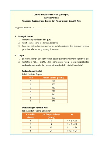 perbandingan senilai dan perbandingan berbalik nilai di bawah ini!