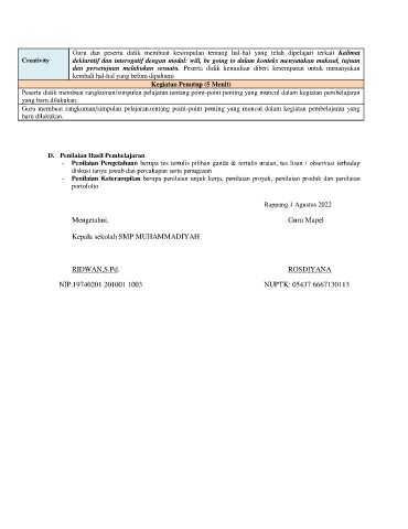 Guru membuat rangkuman/simpulan pelajaran.tentang point-point penting yang muncul dalam kegiatan pembelajaran yang