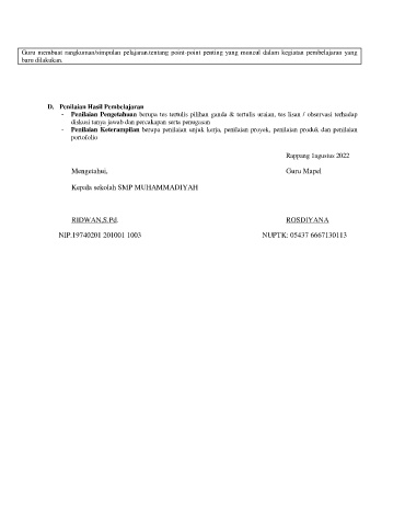 Guru membuat rangkuman/simpulan pelajaran.tentang point-point penting yang muncul dalam kegiatan pembelajaran yang