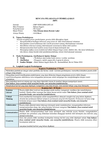 Materi Pokok : Teks Khusus dalam Bentuk Label