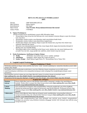 Materi Pokok : Teks Prosedur; Resep makanan/minuman dan manual
