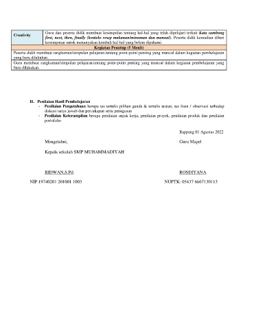 Peserta didik membuat rangkuman/simpulan pelajaran.tentang point-point penting yang muncul dalam kegiatan pembelajaran