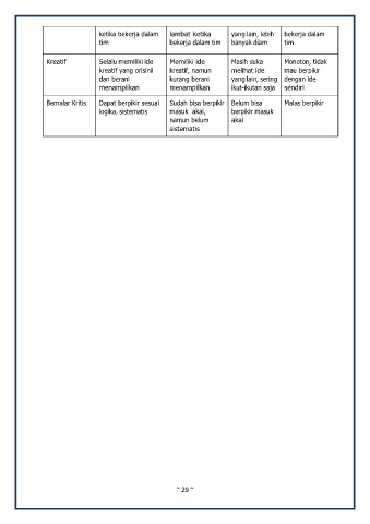 Bernalar Kritis Dapat berpikir sesuai Sudah bisa berpikir Belum bisa Malas berpikir