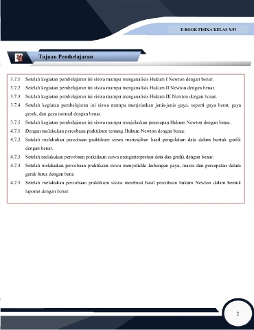 3.7.2  Setelah kegiatan pembelajaran ini siswa mampu menganalisis Hukum II Newton dengan benar.