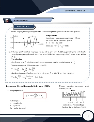1. Grafik simpangan sebagai fungsi waktu. Tentukan amplitudo, periode dan frekuensi getaran!