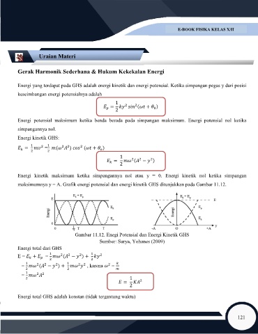 maksimumnya y = A. Grafik energi potensial dan energi kinetik GHS ditunjukkan pada Gambar 11.12.