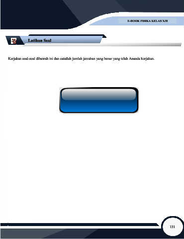 E-BOOK FISIKA KELAS X/II Latihan Soal Kerjakan soal-soal dibawah ini dan catatlah jumlah jawaban yang benar yang telah Ananda kerjakan. 131