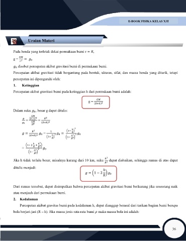 Percepatan akibat gravitasi bumi pada ketinggian h dari permukaan bumi adalah: