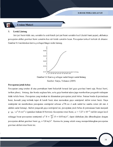 Gambar 8.4 melukiskan kurva g sebagai fungsi sudut lintang.