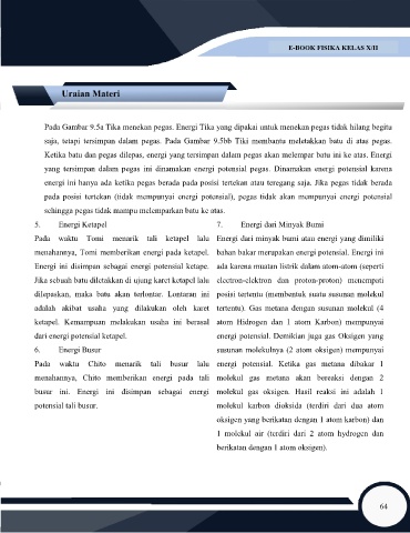 menahannya, Tomi memberikan energi pada ketapel. bahan bakar merupakan energi potensial. Energi ini