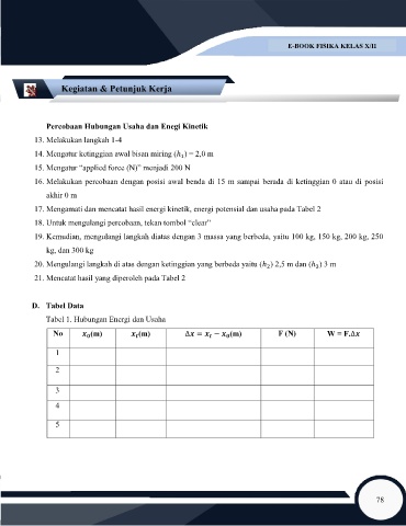 17. Mengamati dan mencatat hasil energi kinetik, energi potensial dan usaha pada Tabel 2