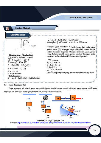 • Lihat sumbu y (Benda diam) sumbu x berlaku hukum II Newton, dan diperoleh: