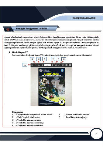 agar kegunaannya dapat berjalan optimal. Berikut petunjuk penggunaan tools dalam e-book Fisika ini.