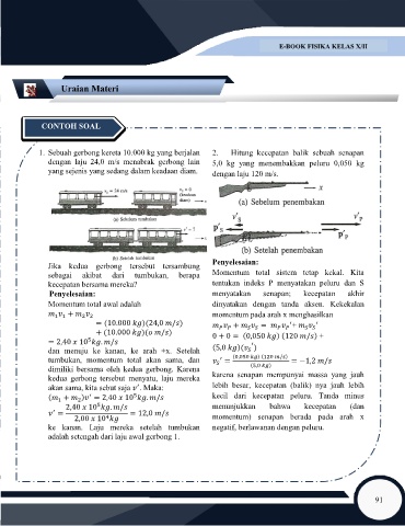 1. Sebuah gerbong kereta 10.000 kg yang berjalan 2. Hitung kecepatan balik sebuah senapan