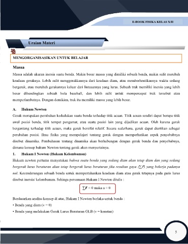 bergerak, atau merubah gerakannya keluar dari lintasannya yang lurus. Sebuah truk memiliki inersia yang lebih