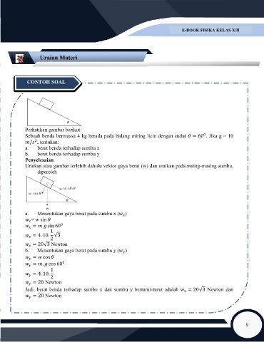 Uraikan atau gambar terlebih dahulu vektor gaya berat (w) dan uraikan pada maing-masing sumbu,