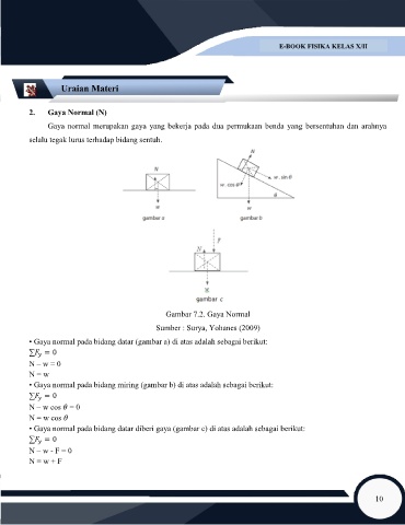 Gaya normal merupakan gaya yang bekerja pada dua permukaan benda yang bersentuhan dan arahnya