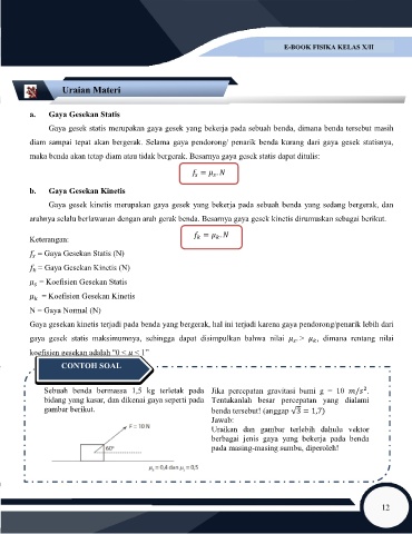 diam sampai tepat akan bergerak. Selama gaya pendorong/ penarik benda kurang dari gaya gesek statisnya,