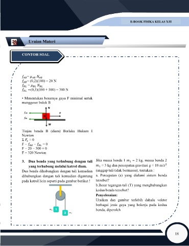3. Dua benda yang terhubung dengan tali Jika massa benda 1 = 2 kg, massa benda 2