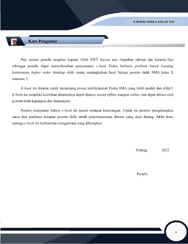 sehingga penulis dapat menyelesaikan penyusunan e-book Fisika berbasis problem based learning