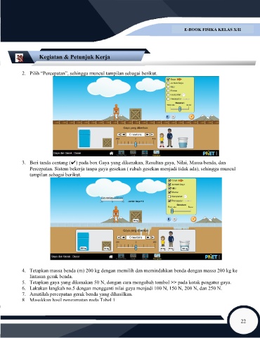 4. Tetapkan massa benda (m) 200 kg dengan memilih dan memindahkan benda dengan massa 200 kg ke